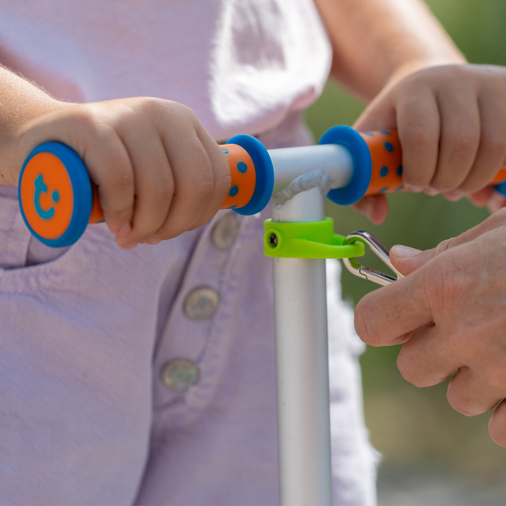 • Curea pentru tractare si transport - trotineta poate fi transportata cu usurinta, agatata de carucior sau pusa pe umar. Cureaua este utila in timpul procesului de invatare sau cand copiii obosesc.