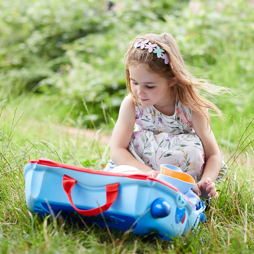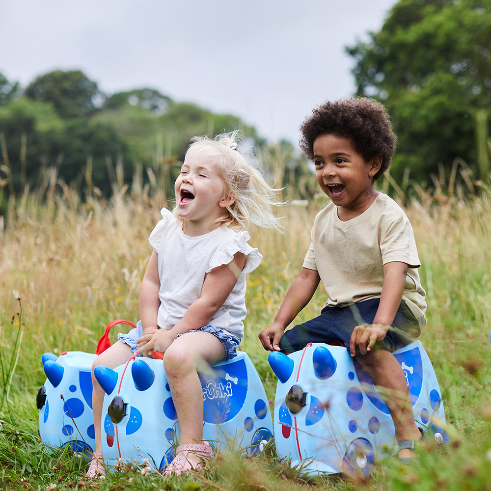 Conceputa special pentru cei mici, valiza Trunki: 1) Invata copiii sa fie responsabili pentru lucrusoarele lor, permitandu-le sa-si pregateasca propriul bagaj, 2) Evita durerile de picioare, copiii pot sta pe valiza cand sunt obositi si o pot calari cand se plictisesc, 3) Parintii isi pot tracta copiii pe valiza, fara a trebui sa-si intrerupa calatoria.
